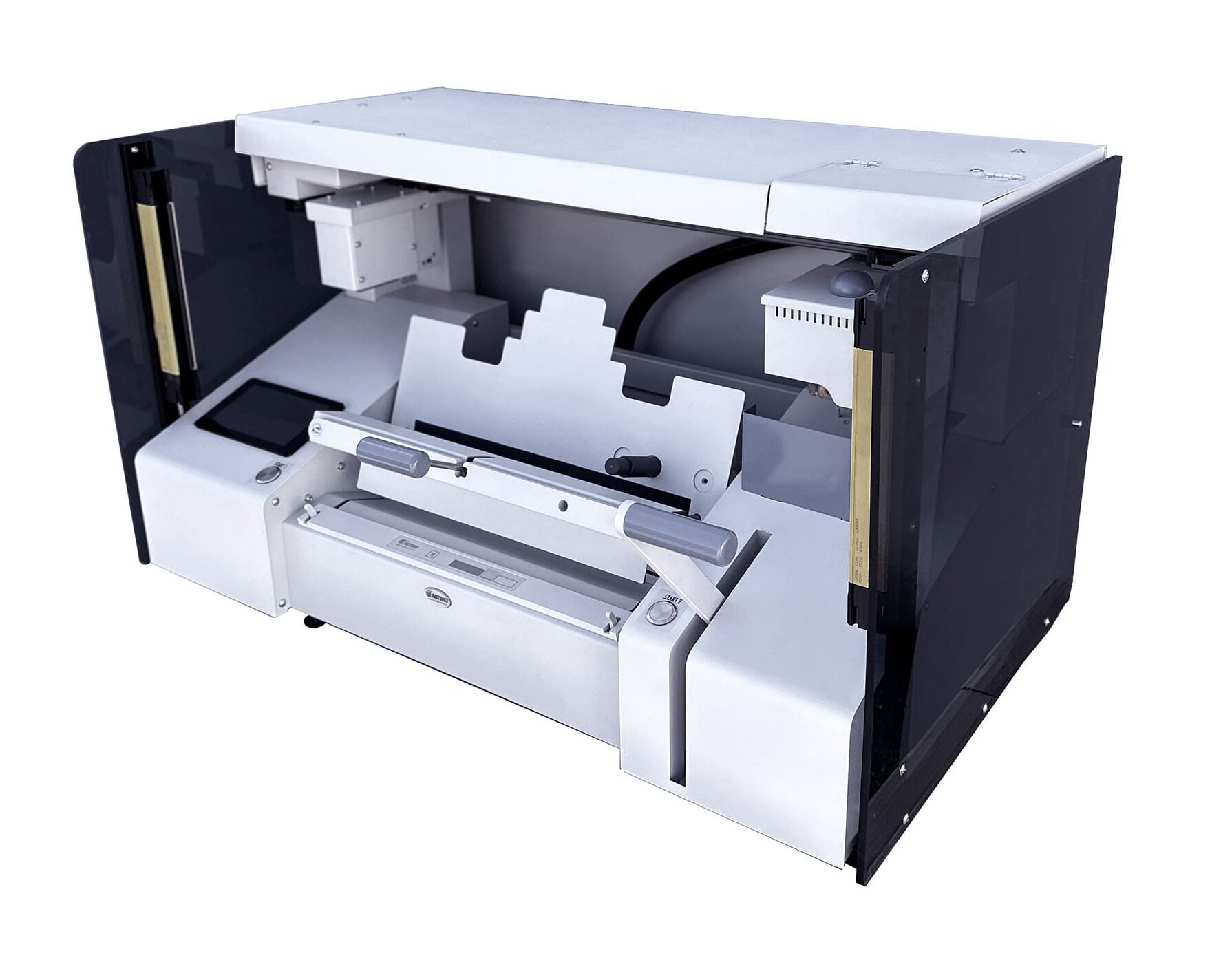 Επαγγελματικό επιτραπέζιο μηχάνημα περιμετρικής θερμοκόλλησης με δυνατότητα διπλής λειτουργίας – με ρευστή κόλλα ποιότητας PUR και ποιότητας EVA. Νέος πατενταρισμένος ηλεκτροκίνητος μηχανισμός επάλειψης της κολλάς, με ειδικό ανταλλακτικό δοχείο για την πολύ εύκολη αλλαγή από την μια ποιότητα κόλλας στην άλλη, σε δευτερόλεπτα, χωρίς να απαιτείται χρήση εργαλείων. Ηλεκτροκίνητο αγρίεμα των φύλλων [roughening] για καλύτερο αποτέλεσμα στις δύσκολες ποιότητες χαρτιού, δυνατότητα δεσίματος βιβλίων μεγέθους έως και Α3+ (μήκος ράχης έως και 45.5cm), με μέγιστο πάχος ράχης έως και 4.5cm (βιβλίο έως και 450 φύλλων 80gsm), με τέσσερα διαφορετικά είδη δεσίματος – soft covers με εξώφυλλα από χαρτόνι έως και 400gsm, σκληρά καλύμματα, «strips» (ταινία) και «tear-off» (μπλόκ). Παρέχει μεγάλη ταχύτητα βιβλιοδεσίας (2-3 βιβλία/λεπτό, 120-180 βιβλία/ώρα), πολύ χαμηλό κόστος βιβλιοδεσίας, ισχυρότατη κόλληση ακόμη και στις πιο δύσκολες ποιότητες χαρτιού (με την χρήση της ποιότητος PUR), πλήρες άνοιγμα (180 μοιρών) των βιβλιοδετημένων εντύπων, ευέλικτη και αθόρυβη λειτουργία, προστασία του χρήστη με φωτοκύτταρα, compact μέγεθος και πολύ καλή, στιβαρή ποιότητα κατασκευής.