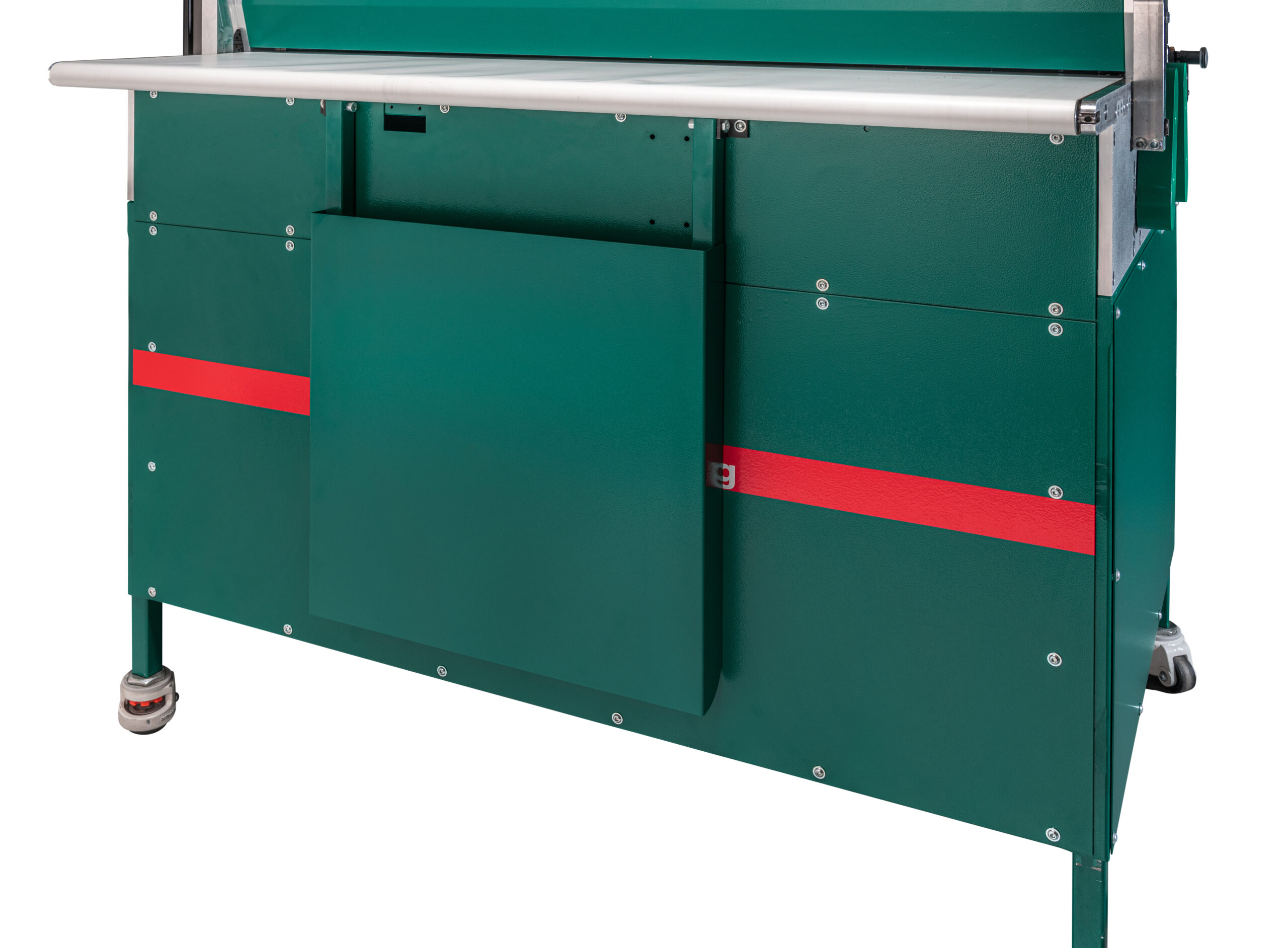Υπερ-Επαγγελματικό σύστημα για την κατασκευή σκληρών καλυμμάτων ( καλυμματική + κυλινδρική πρέσσα ) για μεγέθη καλύμματος από 15 x 15cm έως και 52 x 110cm μέγιστο (υπολογισμένο με “γύρισμα” 20mm στην κάθε πλευρά), εύκολη λειτουργία με οθόνη αφής, ηλεκτροκίνητο τραπέζι-ιμάντας με vacuum σε όλη του την επιφάνεια, ηλεκτροκίνητους ατσάλινους οδηγούς γωνιάσματος (κίνηση επάνω και κάτω), δέσμη laser για το εύκολο κεντράρισμα του εξωφύλλου, δύο ποδοπεντάλ για την κίνηση του τραπεζιού και των οδηγών αντίστοιχα, αυτόματη κυλινδρική πρέσσα για το δίπλωμα-γύρισμα των άκρων του σκληρού καλύμματος (σε 2 φάσεις), δυνατότητα επιλογής της κατεύθυνσης εξόδου του έτοιμου καλύμματος ανάλογα με το πλήθος των χρηστών, δυνατότητα χρήσης χαρτονιών πάχους από 1,2mm έως και 3,5mm, συρτάρι για την αποθήκευση έξτρα οδηγών και εργαλείων, δυνατότητα κατασκευής δύο καλυμμάτων ταυτοχρόνως, παραγωγή εως και 120 καλυμμάτων / ώρα, στιβαρή εξολοκλήρου μεταλλική κατασκευή. Το μηχάνημα μπορεί να συνδυαστεί ιδανικά με την αλοιφτική μηχανή Schmedt PräziCoat και την κυλινδρική πρέσσα Schmedt PräKant για ταχύτερη παραγωγή με την συνεργασία 2ου χρήστη.